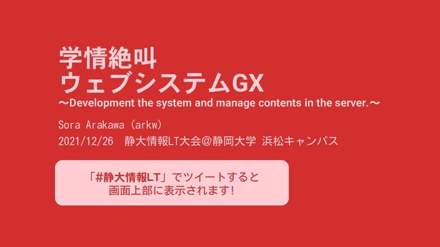 server.~ Sora Arakawa (arkw) 2021/12/26 静大情報LT大会@静岡大学 浜松キャンパス 「#静大情報LT」でツイートすると 画面上部に表示されます!