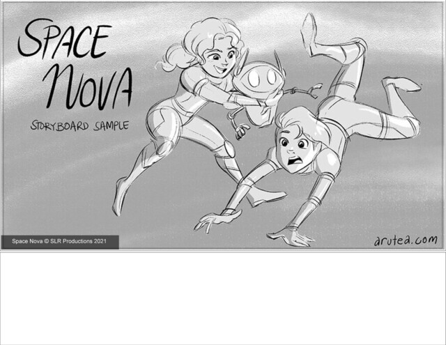 Storyboard sample from Space Nova Season 1 Episode 18 "Shore Leave" by SLR Productions which aired on ABC ME in August 2021. This storyboard was supervised by Episodic Director, Gie Santos.