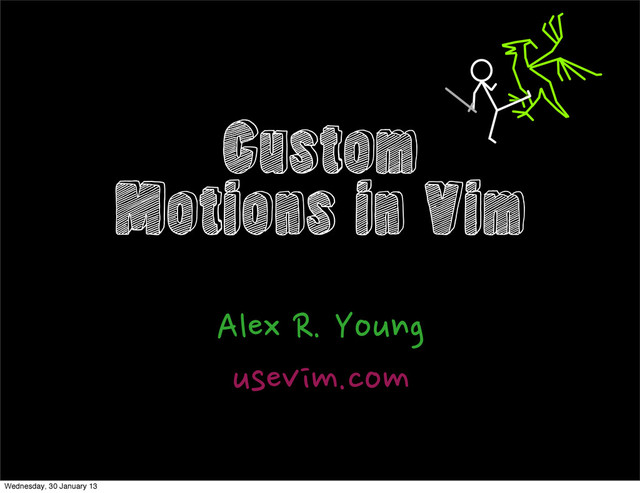 = ... elseif a:type == 2 let pattern = ... endif if a:backwards let dir = '?' else let dir = '/' endif execute 'silent normal! ' . dir . pattern . "\r" endfunction Wednesday, 30 January 13