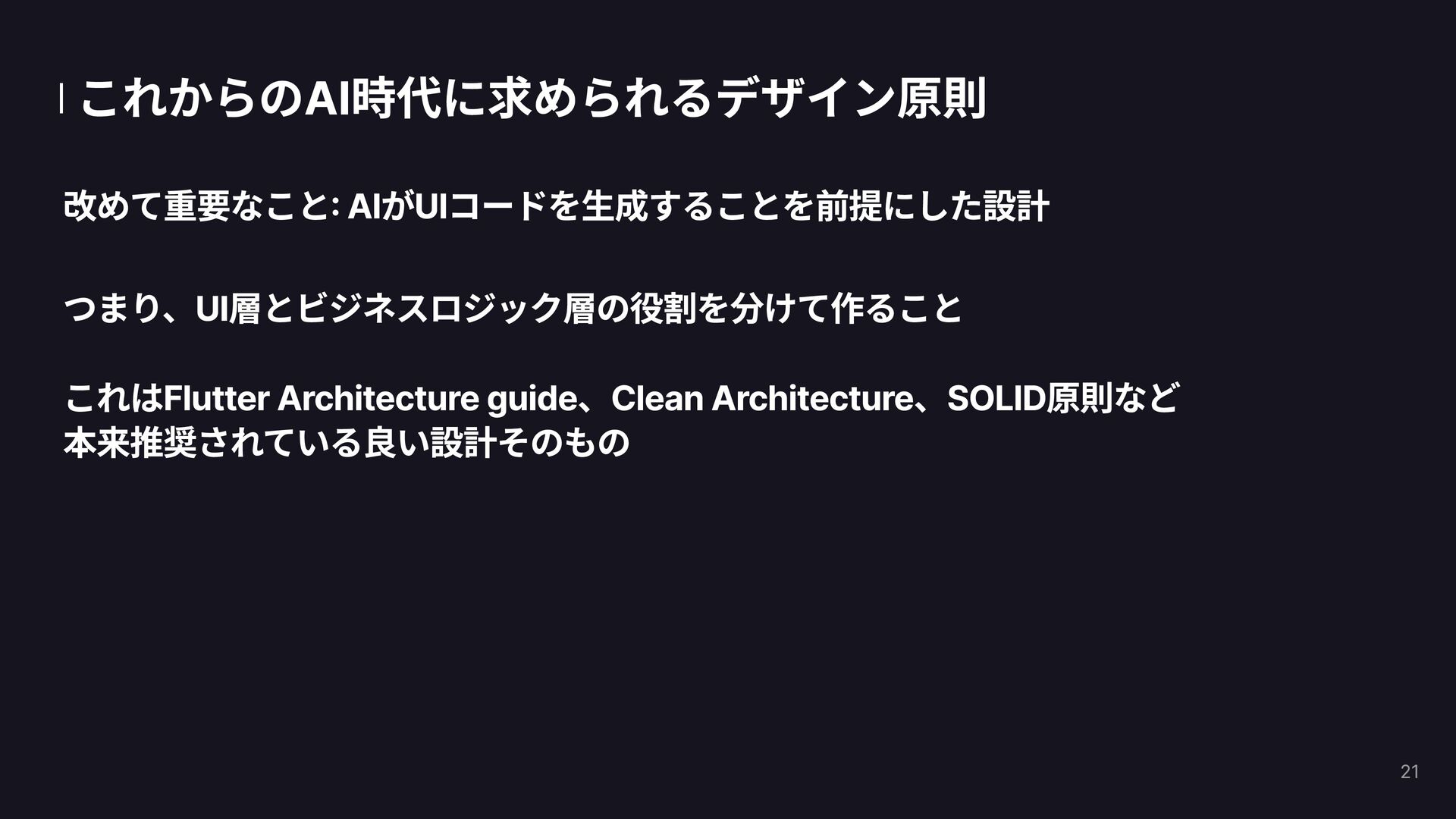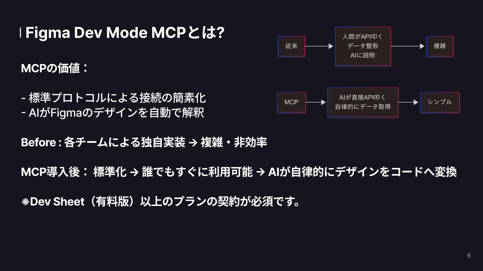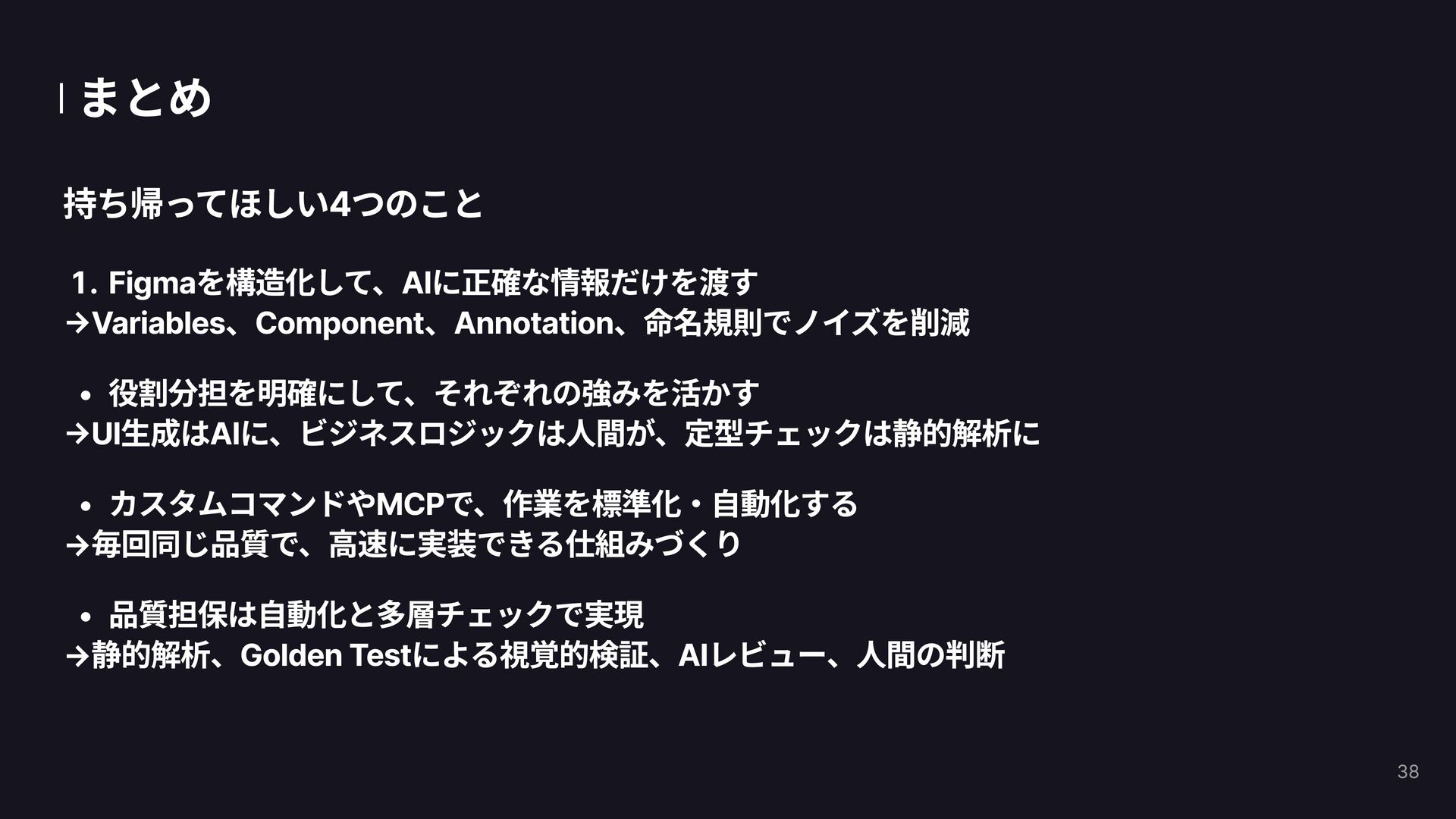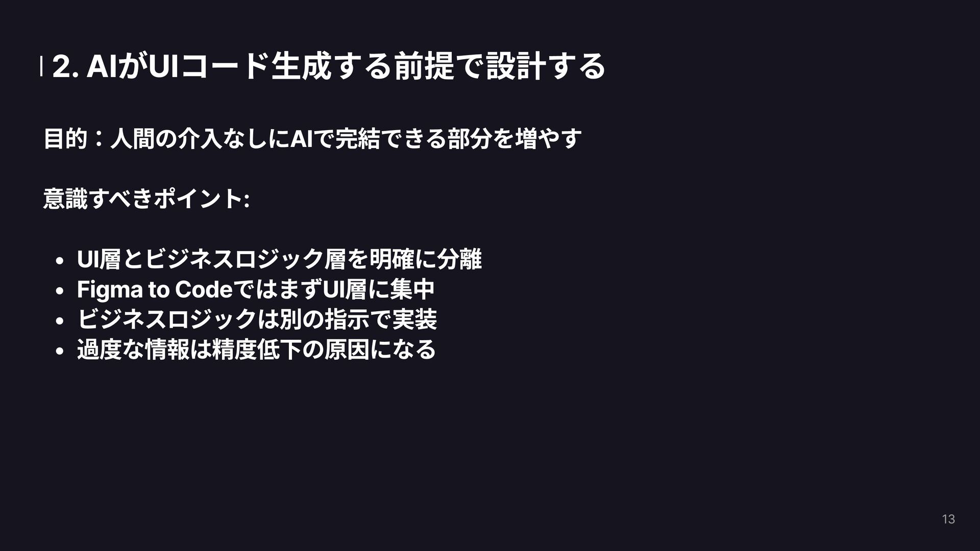 株式会社アトラエでは、Figmaの構造化(Variables、Component、Annotation)とAIを組み合わせたUI実装の効率化に取り組んでおり、本セッションでは実際の開発現場での試行錯誤から得られた知見をもとに、AIによるコード生成の精度を高める具体的な手法と、UI層とビジネスロジック層の適切な分離によるAI活用戦略について、実装パターンとともにお伝えします。