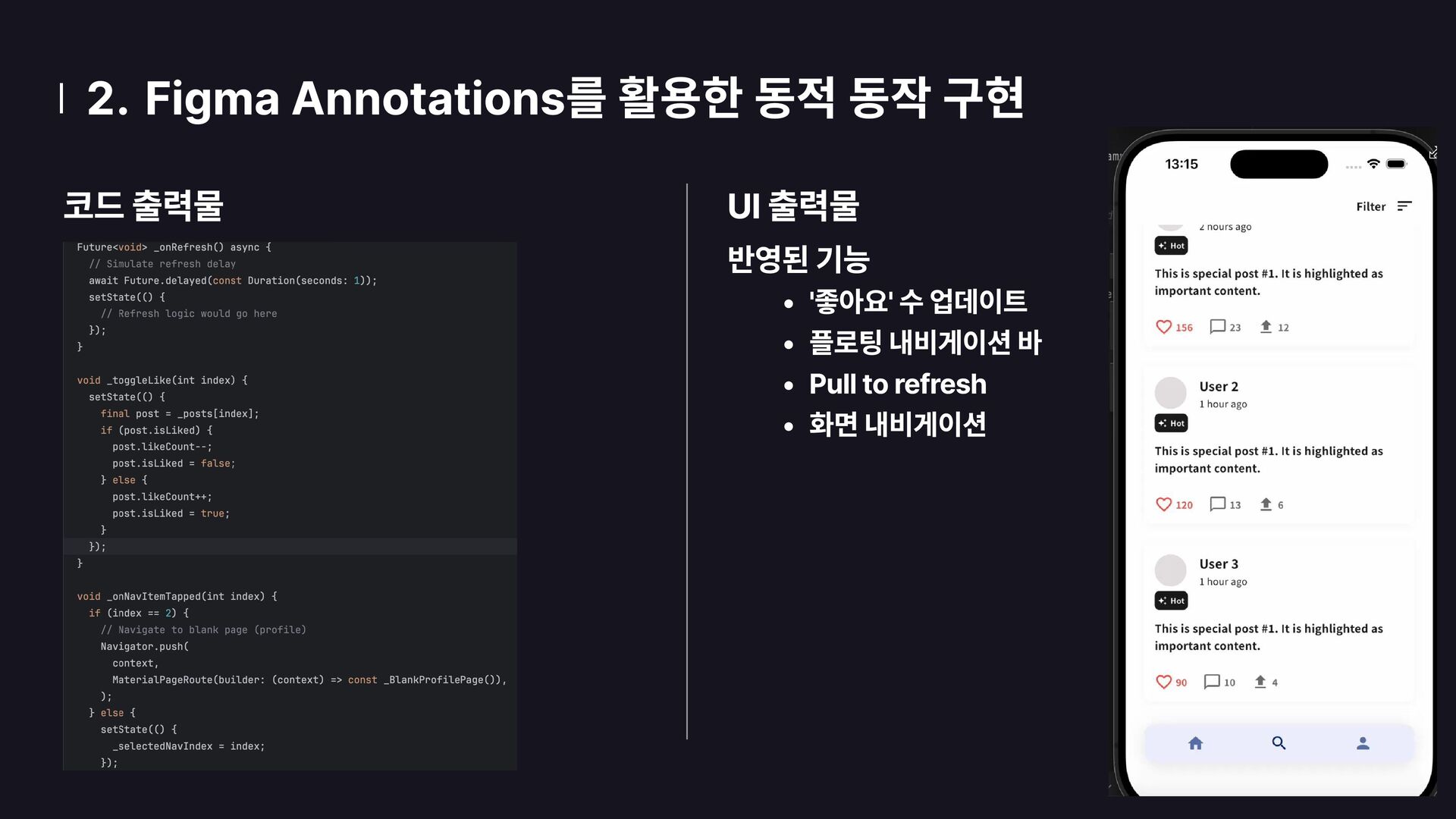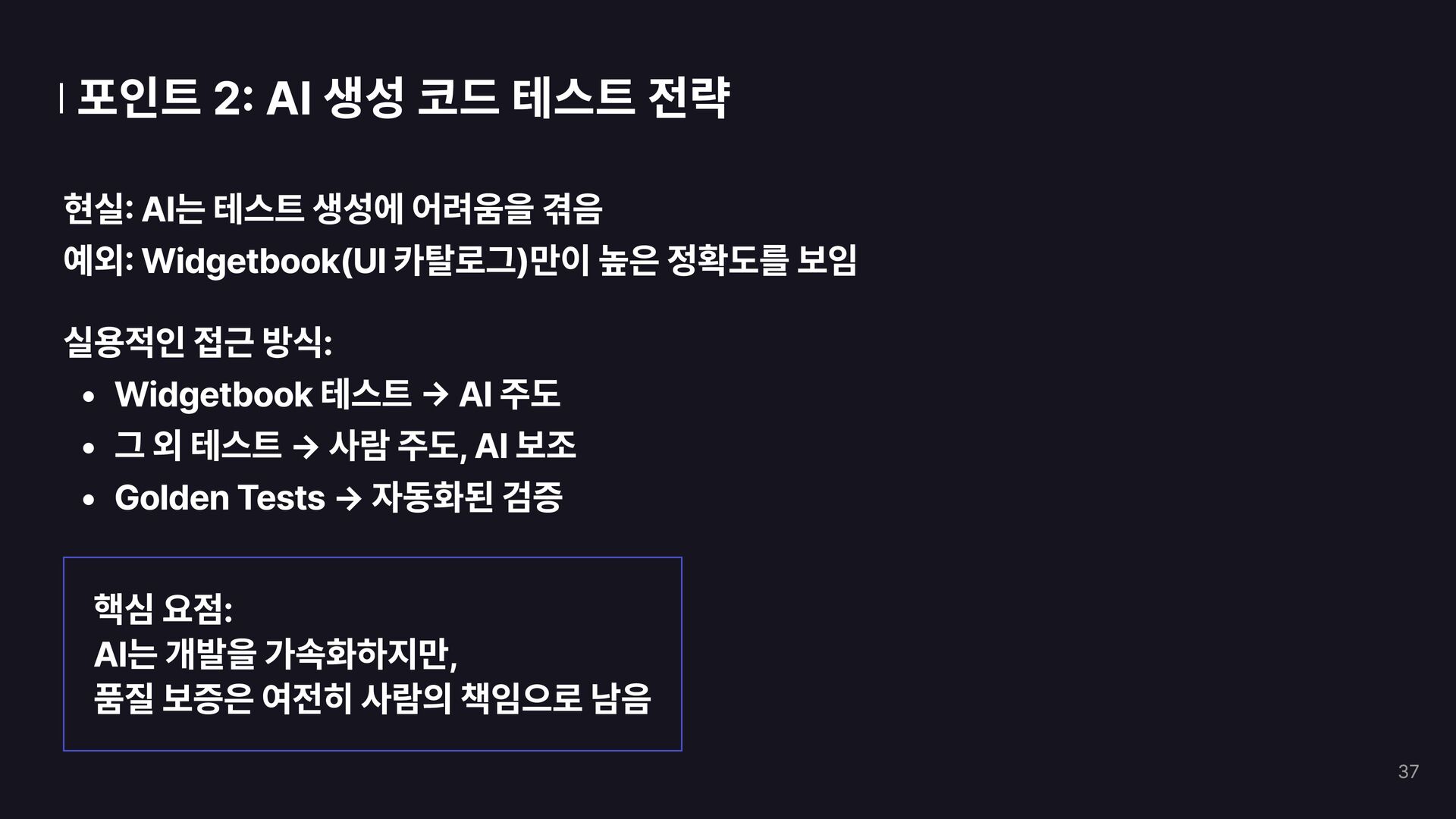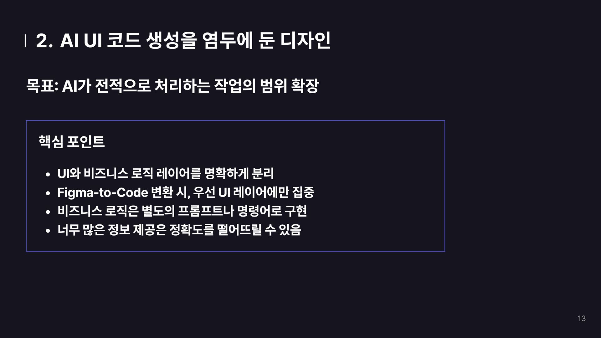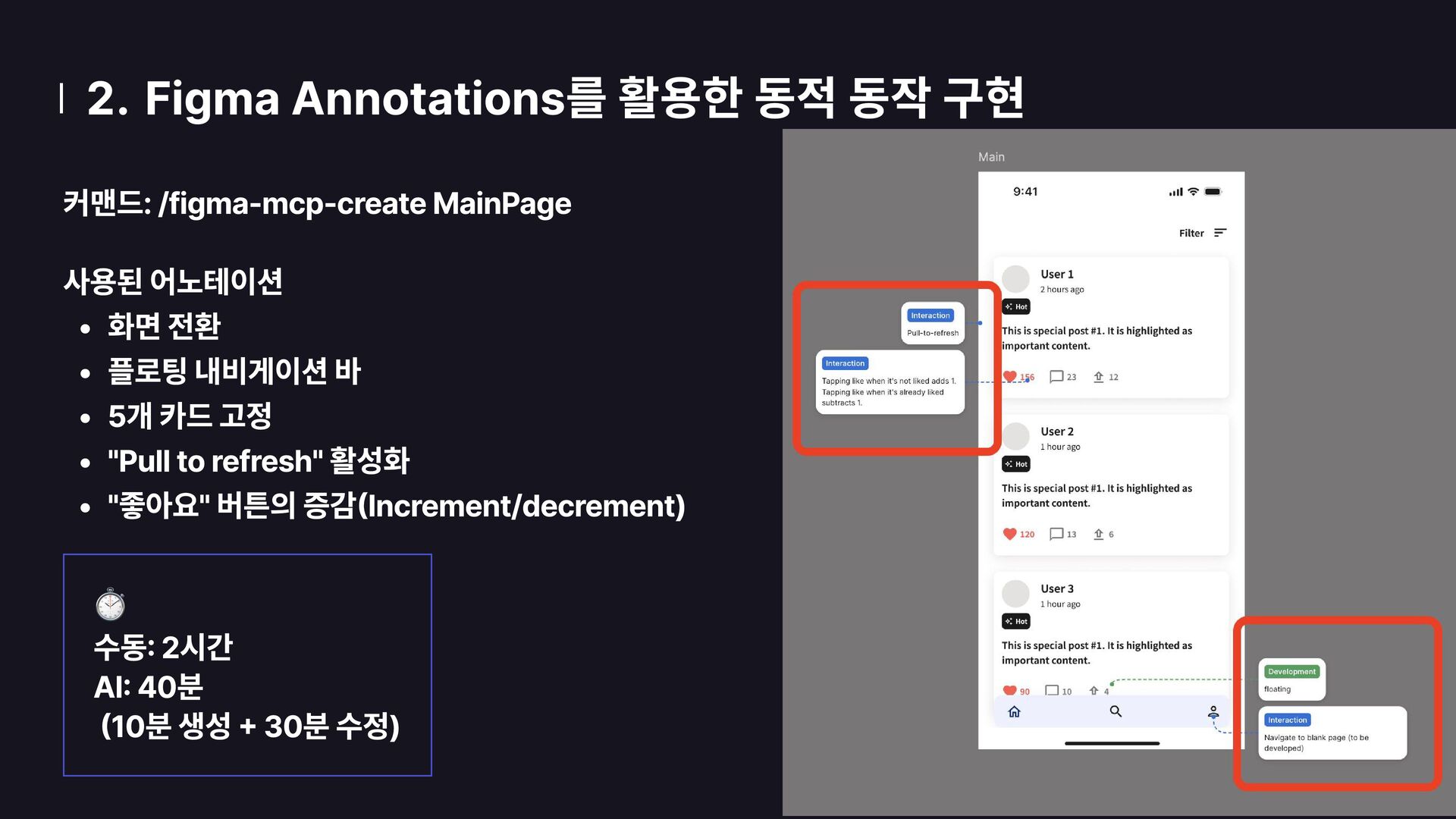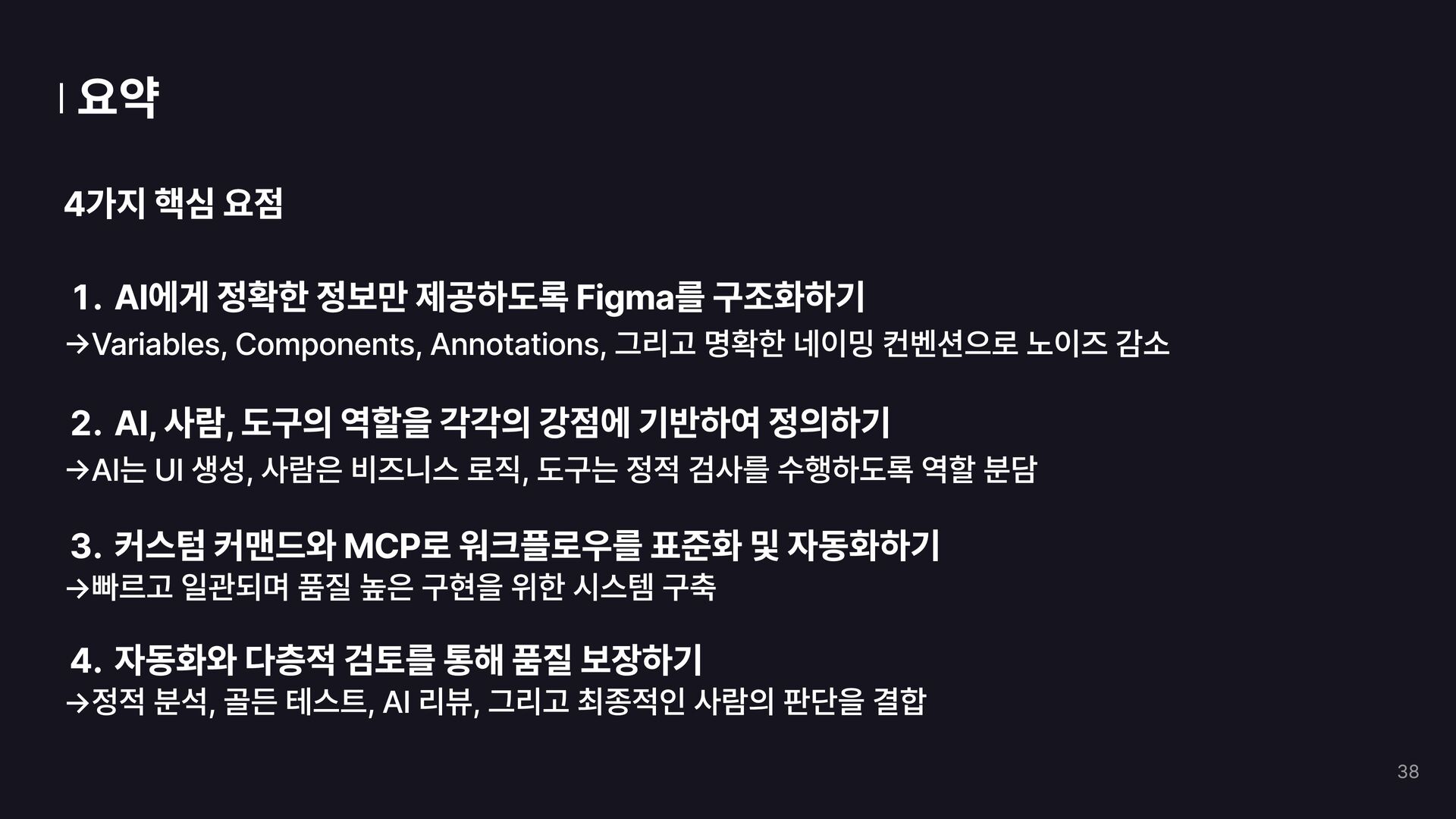 주식회사 아트래에서는 Figma의 구조화(Variables, Component, Annotation)와 AI를 결합한 UI 구현 효율화에 힘쓰고 있으며, 본 세션에서는 실제 개발 현장에서의 시행착오를 통해 얻은 인사이트를 바탕으로 AI 코드 생성의 정확도를 높이는 구체적인 방법과 UI 레이어와 비즈니스 로직 레이어의 적절한 분리를 통한 AI 활용 전략에 대해 구현 패턴과 함께 공유합니다.