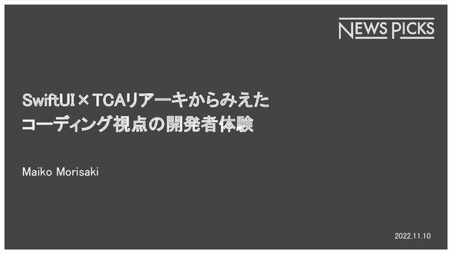 SwiftUI×TCAリアーキからみえた コーディング視点の開発者体験 2022.11.10 Maiko Morisaki