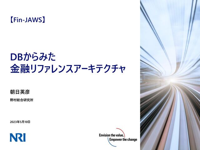 ◼朝日英彦(ASAHI Hidehiko) ◼略歴 ⚫野村総合研究所にて金融業界のお客様向けのミッションクリティカルなシステム基 盤設計・構築、特にデータベース周りのチューニング等を長年にわたり実施。現在は 保険業界向けのシステムモダナイズやクラウドシフトに従事 ◼好きなAWSサービス ⚫Amazon RDS ◼データベース関連の資格等 ⚫2022, 2023 Japan AWS Top Engineer(Database) ⚫2022, 2023 Japan AWS All Certifications Engineer ⚫情報処理技術者(データベース) ⚫Oracle Master Platinum、Oracle Cloud Database Services 2021 Certified Specialist ⚫Azure Database Administrator Associate ⚫Google Cloud: Professional Cloud Database Engineer 自己紹介