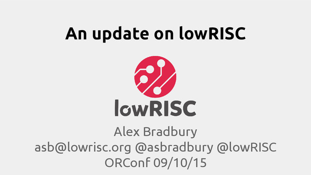and I/O abstraction • Developing the community • PULP integration and minion cores • The first lowRISC tape-out • Debug • Software stack development • Collaborations • Conducting research in the open • $YOUR_TOPIC_HERE