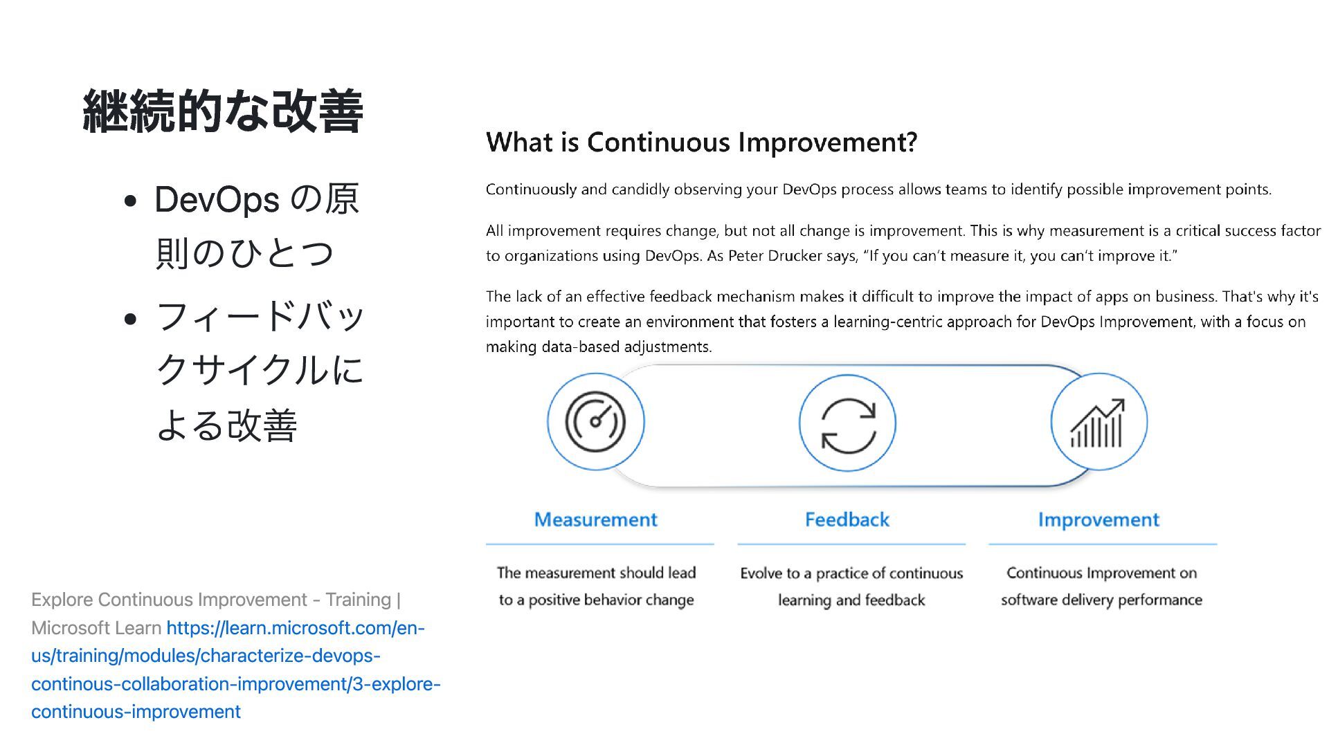 - Training | Microsoft Learn https://learn.microsoft.com/en- us/training/modules/characterize-devops- continous-collaboration-improvement/3-explore- continuous-improvement