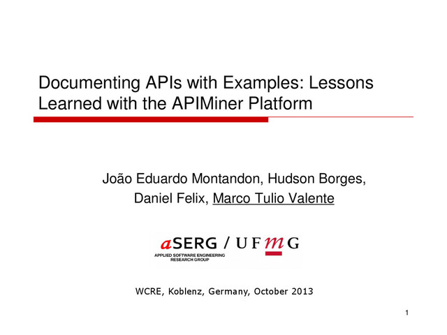 João Eduardo Montandon, Hudson Borges, Daniel Felix, Marco Tulio Valente 1 WCRE, Koblenz, Germany, October 2013