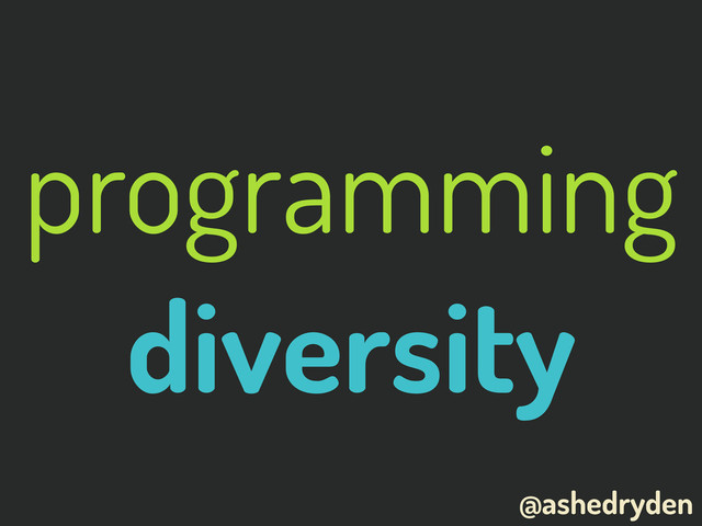 It's been scientifically proven that more diverse communities and workplaces create better products and the solutions to difficult problems are more complete and diverse themselves. Companies are struggling to find adequate talent. So why do we see so few women, people of color, and LGBTQ people at our events and on the about pages of our websites? Even more curiously, why do 60% of women leave the tech industry within 10 years? Why are fewer women choosing to pursue computer science and related degrees than ever before? Why have stories of active discouragement, dismissal, harassment, or worse become regular news? In this talk we’ll examine the causes behind the lack of diversity in our communities, events, and workplaces. We’ll discuss what we can do as community members, event organizers, and co-workers to not only combat this problem, but to encourage positive change by contributing to an atmosphere of inclusivity.