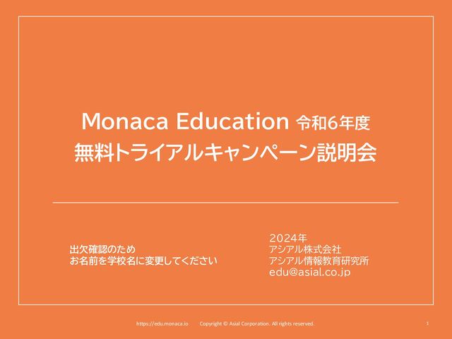 Monaca Education導入で教材準備の負担軽減 実習環境や教材をご自身で用意して授業をする場合と比べて、 Monaca Educationを使用して先生の負担はどれくらい減ったと思いますか? アシアル情報教育研究所実施アンケート Monaca Educationご導入 高等学校の先生88人の回答より 57% の先生が、教材準備の負担が減ったと回答 18, 21% 39, 44% 23, 26% 7, 8% 1, 1% とても負担が減った 負担が減った どちらとも言えない 負担が減らなかった \ 先生の声 / 例題を考えたり、プリントを作成したりする必要が なくなった。またエラー個所の指摘も分かりやすい ため、生徒自身で解決できることもあった。 ゲームプログラミング(ぷよぷよ、ブロック崩し)は 処理結果が分かりやすいので、飽きやすい生徒の 興味関心も持続できた。 先生用教材ページにアップされている指導案、冊 子のPDFデータ、授業スライドやテストのデータ、 動画など豊富な教材が準備されており、非常に助 かった。 いろいろなサンプルアプリを少し変えるだけで、 様々な技術を学ぶことができる点が 教材導入の決め手。