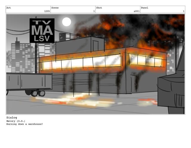 Act 1205 Scene 1 Shot s110 Panel 1 Dialog MALORY