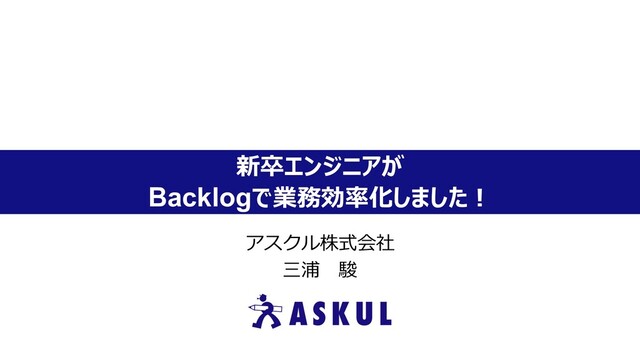 新卒エンジニアが Backlogで業務効率化しました︕ アスクル株式会社 三浦 駿