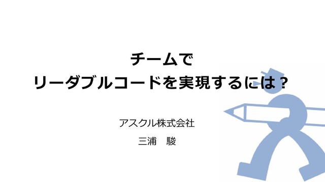 チームで リーダブルコードを実現するには? アスクル株式会社 三浦 駿