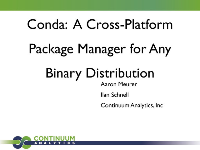 (original conda author) Ilan Schnell (principal conda developer) Travis Oliphant (Continuum CEO)