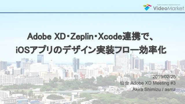 Adobe XD・Zeplin・Xcode連携で、 iOSアプリのデザイン実装フロー効率化 2019/02/25 仙台 Adobe XD Meeting #3 Akira