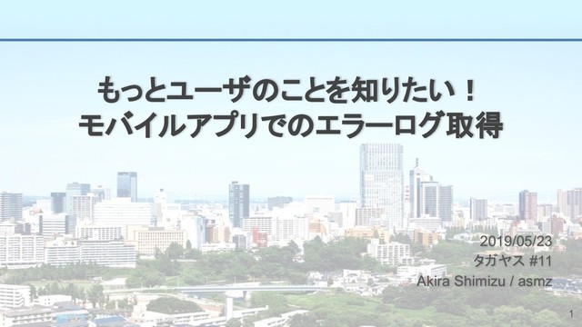 もっとユーザのことを知りたい! モバイルアプリでのエラーログ取得 2019/05/23 タガヤス #11 Akira Shimizu / asmz 1