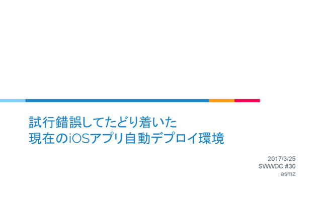 end desc "Lane of dev branch build" lane :dev_build do # 開発ブランチ用のlane match(...) gym(...) crashlytics(...) end desc "Lane of master branch build" lane :master_build do # masterブランチ用のlane match(...) gym(...) deliver(...) end : end ▷ 実行方法 ◦ 開発ブランチ $ fastlane dev_build ◦ masterブランチ $ fastlane master_build