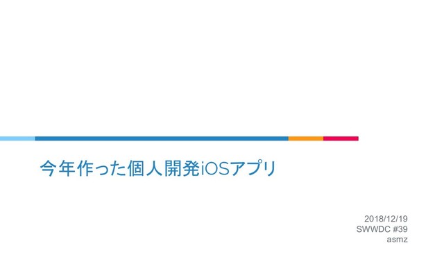 今年作った個人開発iOSアプリ 2018/12/19 SWWDC #39 asmz