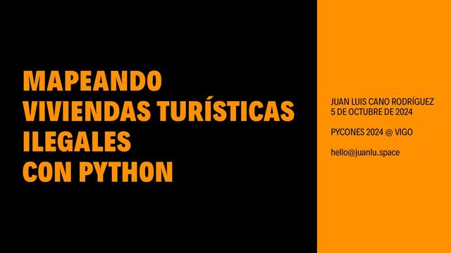 VIVIENDAS TURÍSTICAS ILEGALES CON PYTHON JUAN LUIS CANO RODRÍGUEZ 5 DE OCTUBRE DE 2024 PYCONES 2024 @ VIGO [email protected] @juanlu.space @[email protected]