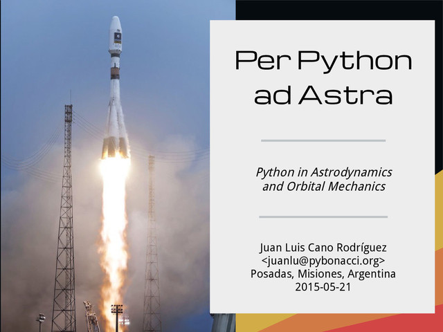 y Lambert • Mi proyecto personal: poliastro • «A hombros de gigantes»: astropy, jplephem y numba • Ventajas de usar solo Python • Algunos desafíos y futuros desarrollos • Conclusiones
