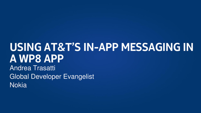 This is a presentation I gave at the AT&T Dev Summit 2014 in Las Vegas describing how developers can integrate the In-App Messaging API v2 in their Windows Phone 8 Apps.