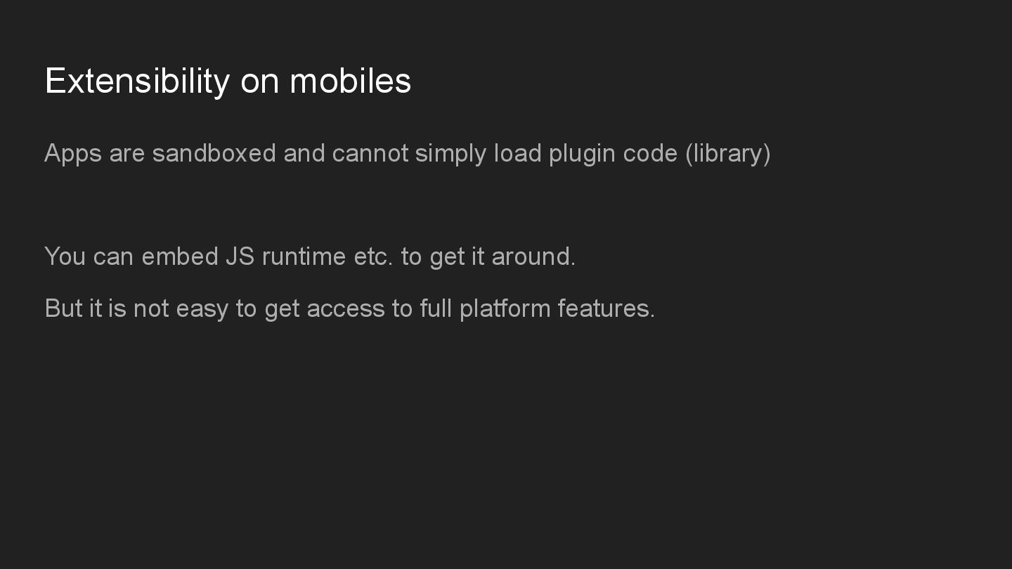2. Extensibility on mobiles Apps are sandboxed and cannot simply load