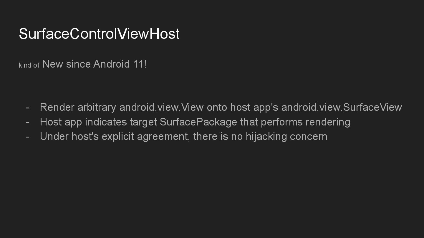 6. SurfaceControlViewHost kind of New since Android 11! - Render arbitrary
