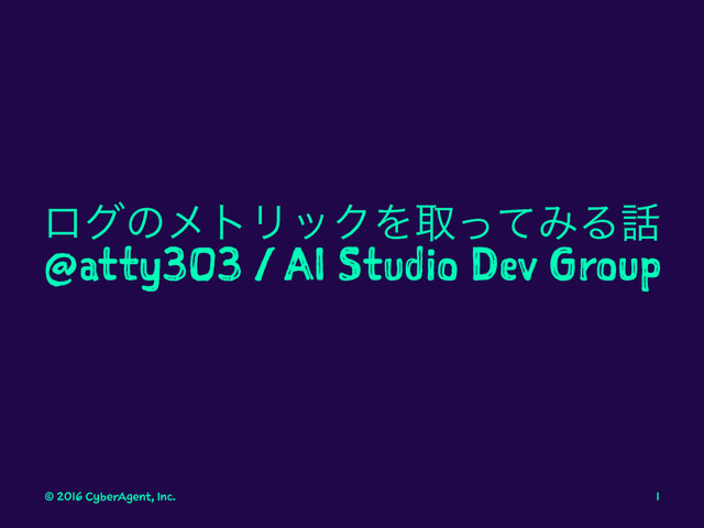 at various log levels # TYPE logback_appender_total counter logback_appender_total{level="debug",} 8.9142634E7 logback_appender_total{level="warn",} 0.0 logback_appender_total{level="trace",} 0.0 logback_appender_total{level="error",} 2728.0 logback_appender_total{level="info",} 11.0 © 2016 CyberAgent, Inc. 8