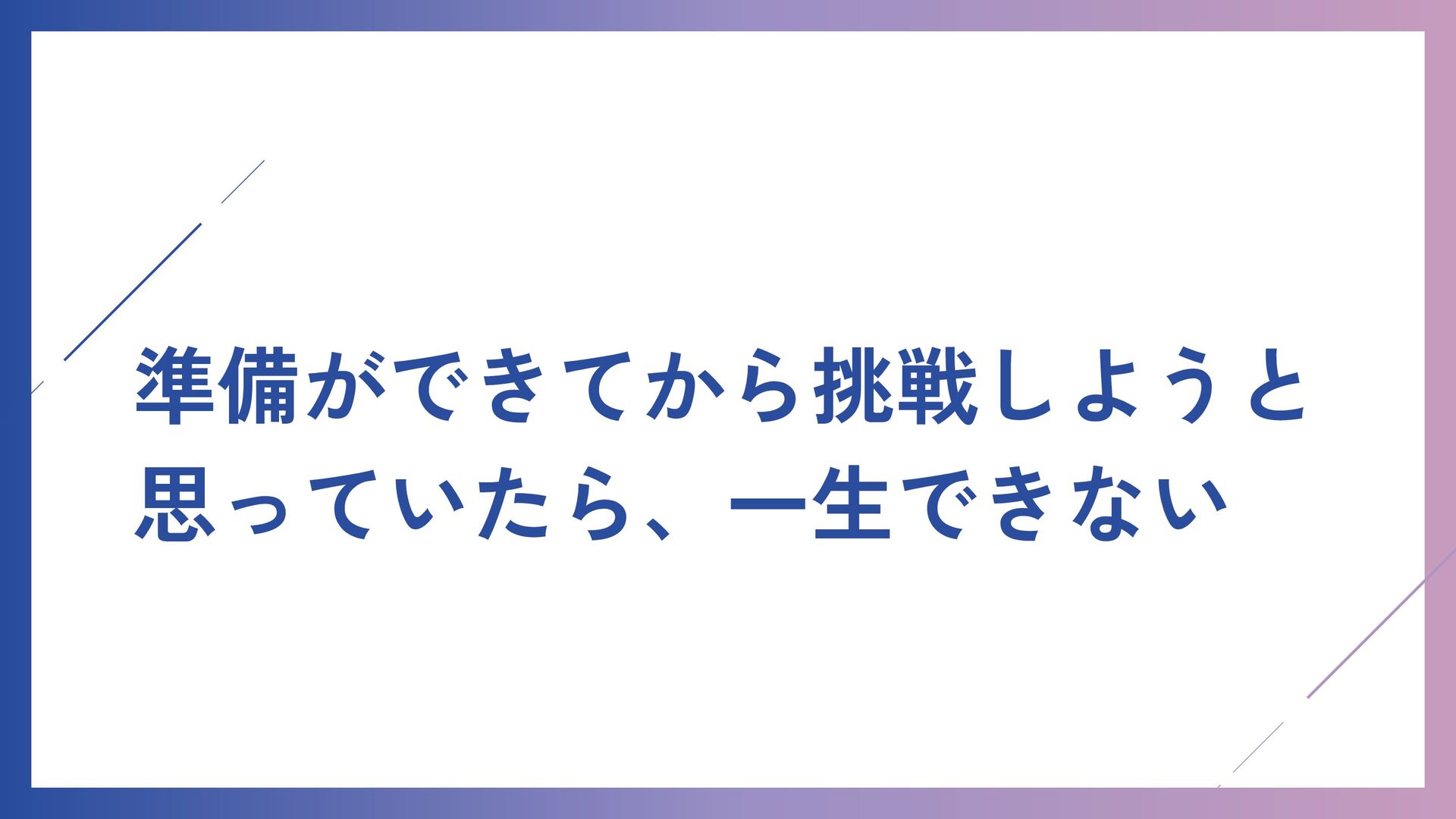 準備ができてから挑戦しようと 思っていたら、一生できない