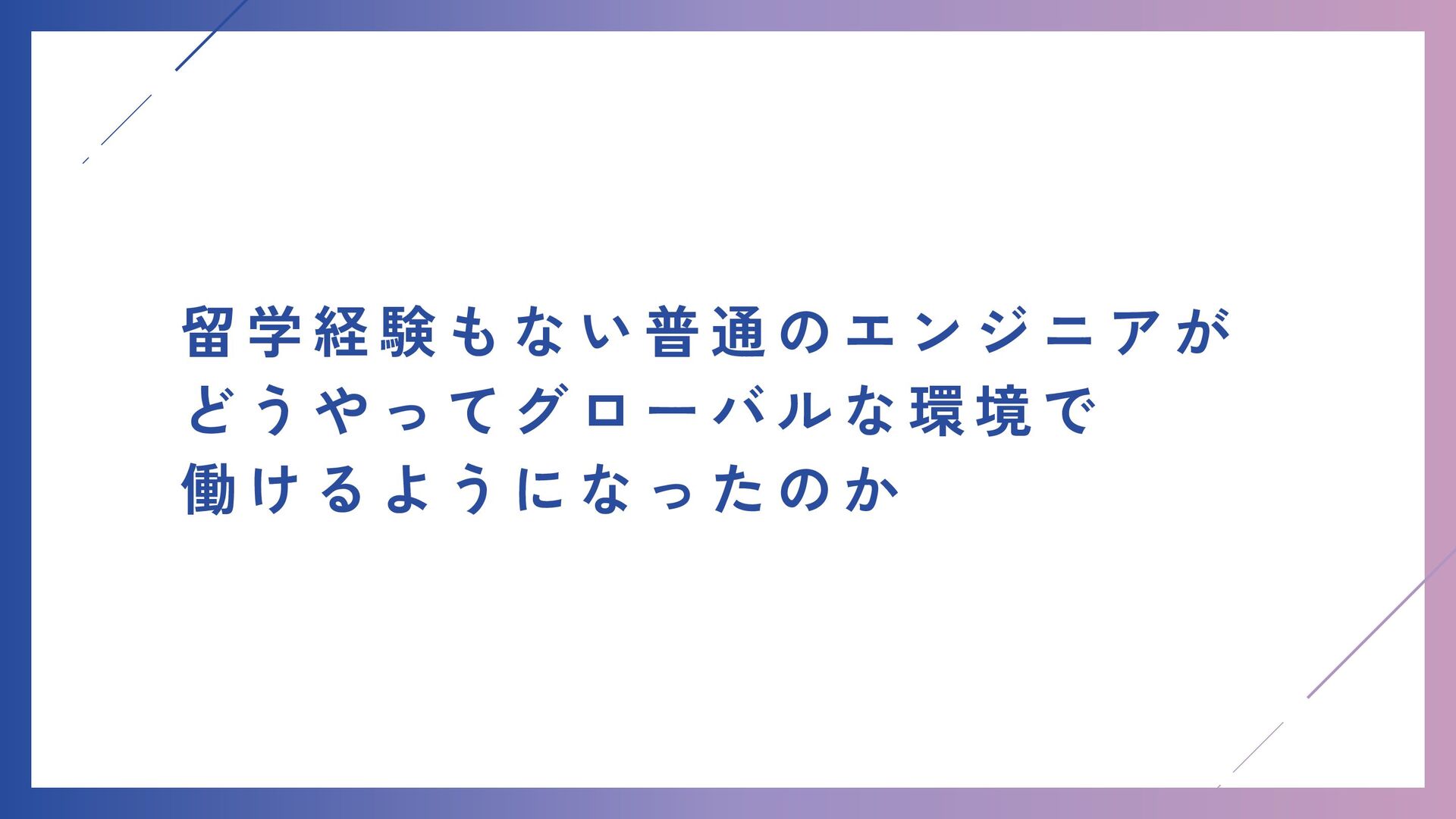 エ ン ジ ニ ア が ど う や っ て グ ロ ー バ ル な 環 境 で 働 け る よ う に な っ た の か