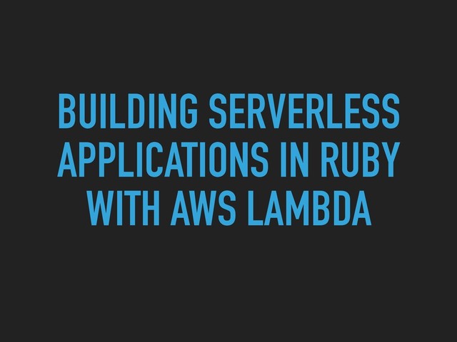 at AWS ▸ Formerly: AWS SDK for Ruby Team ▸ Author of Ruby runtime for AWS Lambda ▸ Twitter: @alexwwood ▸ Please do tweet your comments and questions about this talk!