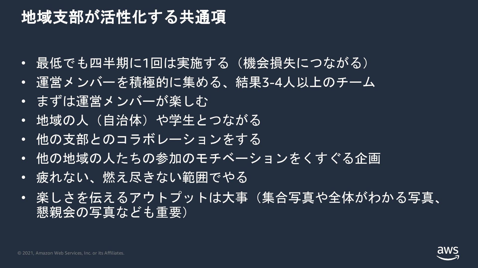 © 2021, Amazon Web Services, Inc. or its Affiliates. 地域支部が活性化する共通項