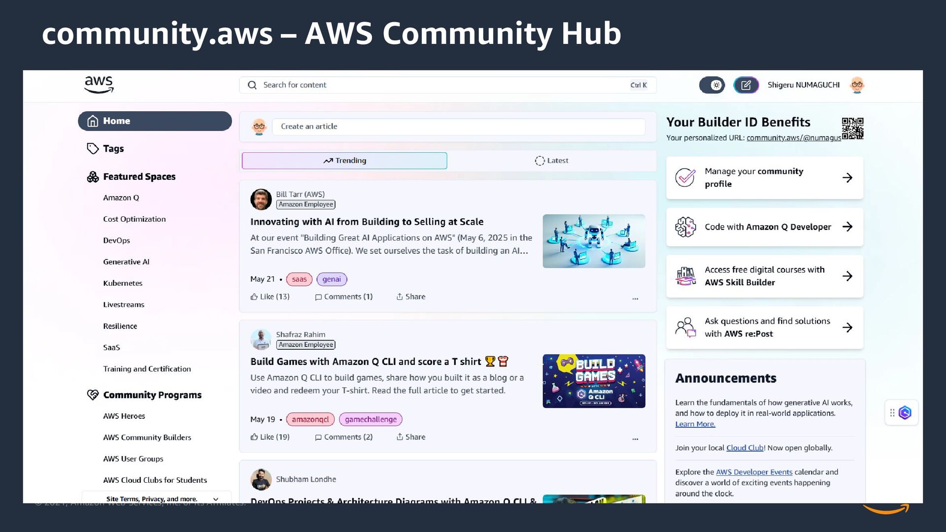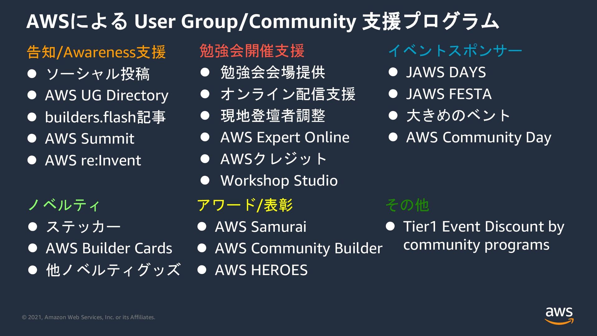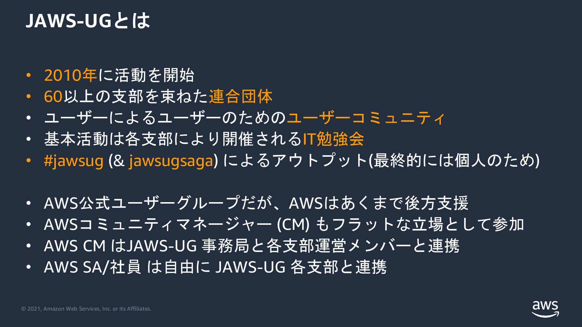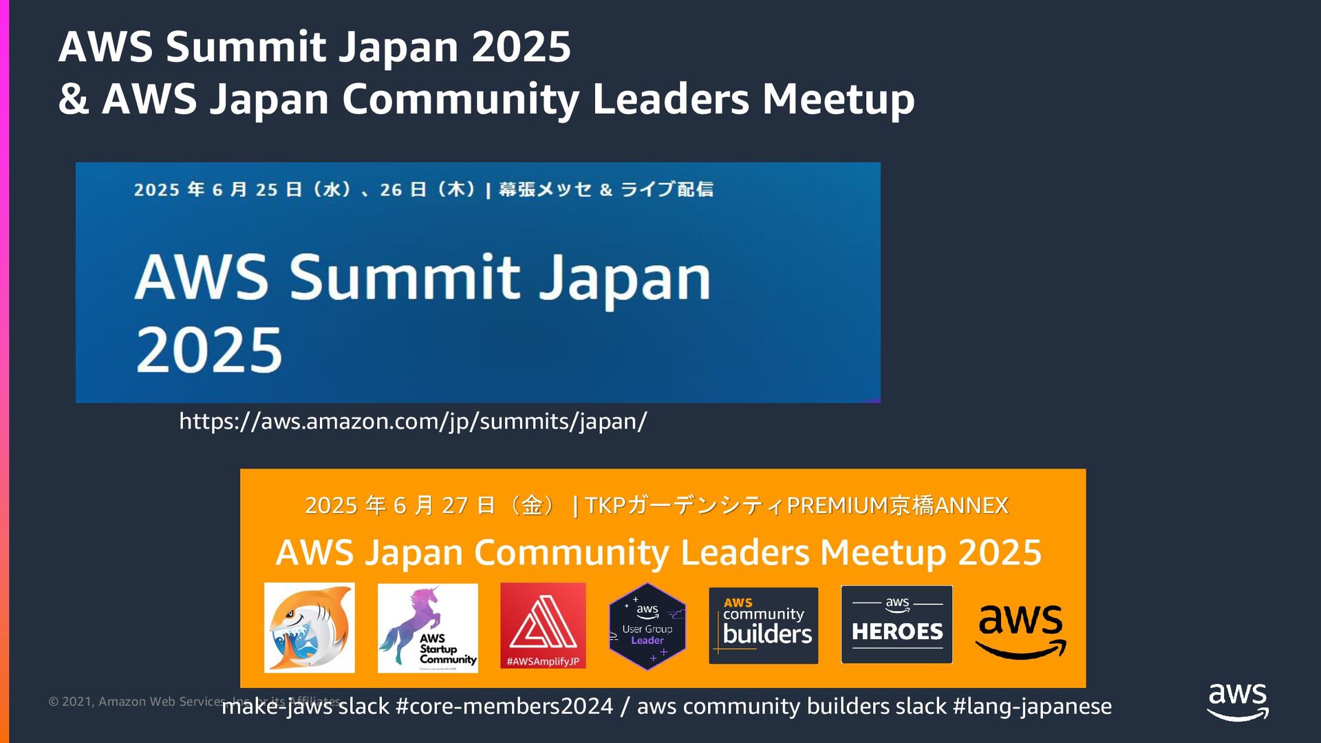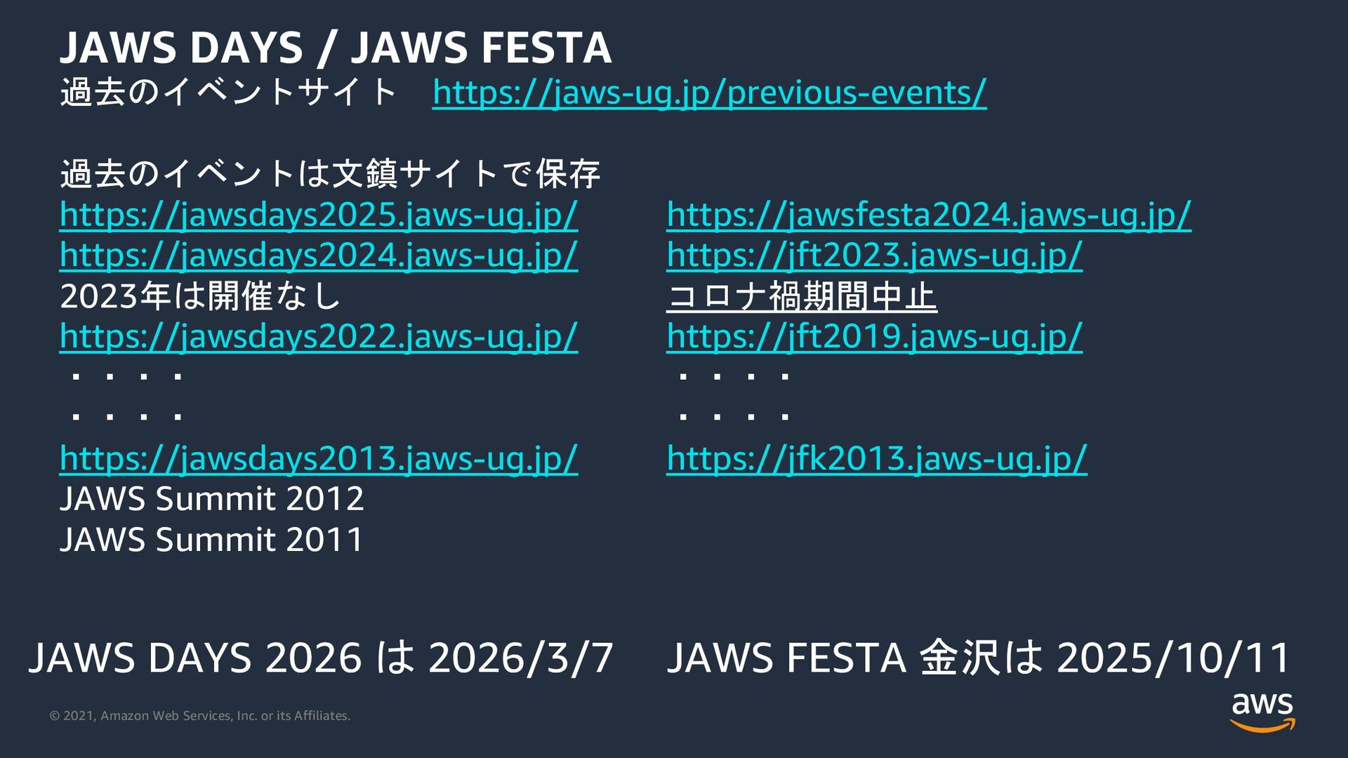 Communities 2025 Mar 登録メンバー数 登録コミュニティメンバー数 #0 JAWS-UG 全国 15,971 (D) 13,678 (+16.3%) #1 JAWS-UG 初心者支部 5,174 (C) 4,524 (+13.6%) #2 JAWS-UG 東京支部 5,118 (C) 2,111 (+133.2%) #3 JAWS-UG コンテナ支部 4,055 (C) 3,555 (+14.2%) #4 JAWS-UG AI/ML支部 4,036 (C) 1,819 (+116.5%) #5 AWS Startup Community 3,185 (C) 2,197 (+43.5%) #6 NW-JAWS 2,778 (C) 1,328 (+83.5%) #7 JAWS-UG アーキ専門支部 2,718 (C) 2,552 (+6.4%) #8 JAWS-UG 横浜支部 2,107 (C) 1,621 (+29.3%) #9 JAWS-UG SRE支部 2,027 (C) 1,104 (+83.4%) #10 Fin-JAWS 1,888 (C) 1,393 (+33.7%) Security-JAWS 4,375(D) -> 1,176(C), JAWS-UG関西 3,363(D)-> Osaka 262(C), 京都(122) 2025/3/25 2023/4/1 (% growth to 2025)