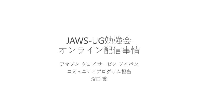 JAWS-UG勉強会 オンライン配信事情 アマゾン ウェブ サービス ジャパン コミュニティプログラム担当 沼口 繁