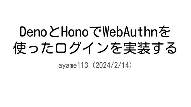 DenoとHonoでWebAuthnを 使ったログインを実装する ayame113 (2024/2/14)