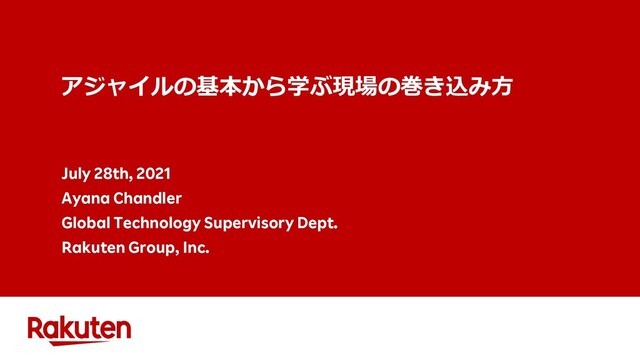 アジャイルの基本から学ぶ現場の巻き込み⽅ July 28th, 2021 Ayana Chandler Global Technology Supervisory Dept.