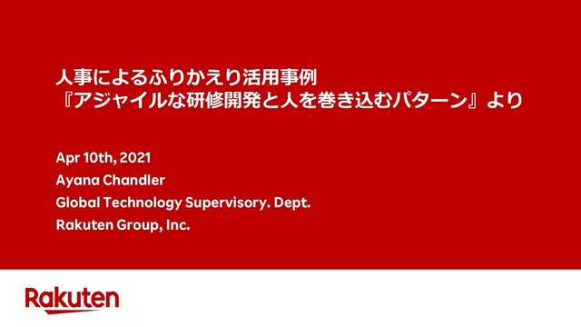 ⼈事によるふりかえり活⽤事例 『アジャイルな研修開発と⼈を巻き込むパターン』より Apr 10th, 2021 Ayana Chandler Global Technology Supervisory.