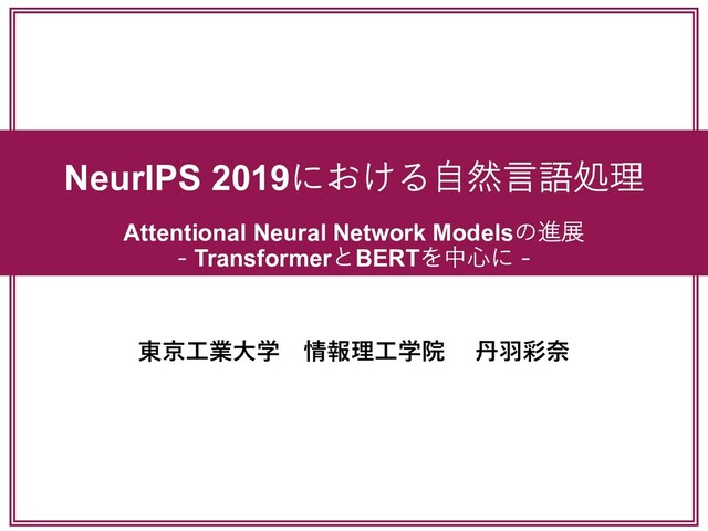 çXLNet ⼊⼒系列の順番はそのままで,トークンの予測順序を⼊れ替え(Permutation) 20タスクでBERTを超え,18タスクでSOTAを達成 簡略化したイメージ図(実際はTwo-stream attentionなどのテクニックが組み込まれるのでもっと複雑) 39 全ての可能な予測順序を考慮することで双⽅向の⽂脈を組み込める Zhilin Yang, et al. “Xlnet: Generalized autoregressive pretraining for language understanding.” NeurIPS2019, slide p.7を参考に具体例で書き直したもの Zhilin Yang, et al. "Xlnet: Generalized autoregressive pretraining for language understanding." NeurIPS2019. (⼊⼒系列)New, York, is, a, city (予測順序)4à2à1à3à0 (city, is, York, a, New) à J⾃⼰回帰モデルとBERTの良いところどりをしたモデル