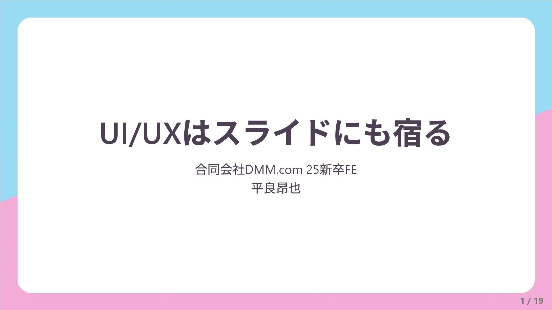 合同会社DMM.com 25 新卒FE 平良昂也 1 / 19 UI/UX はスライドにも宿る