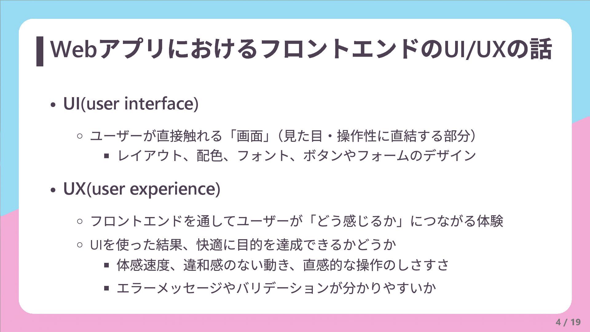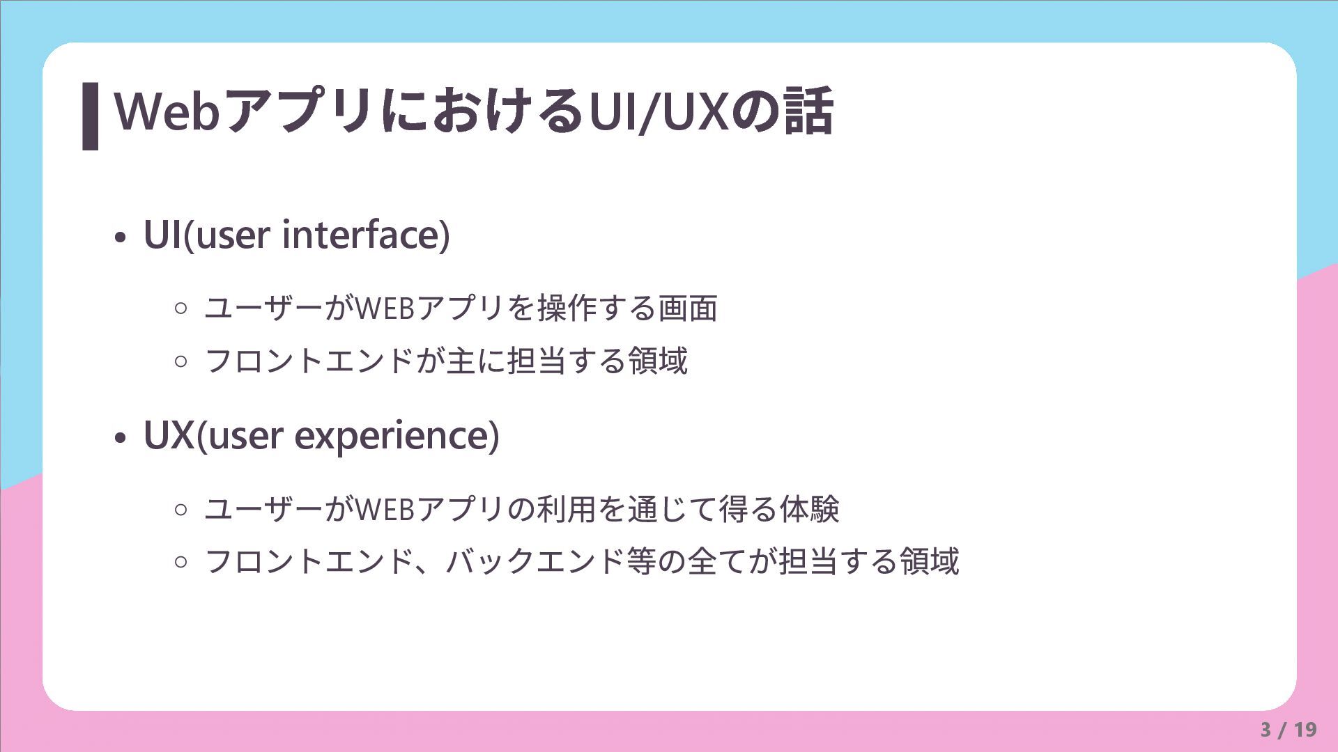 3 / 19 Web アプリにおけるUI/UX の話