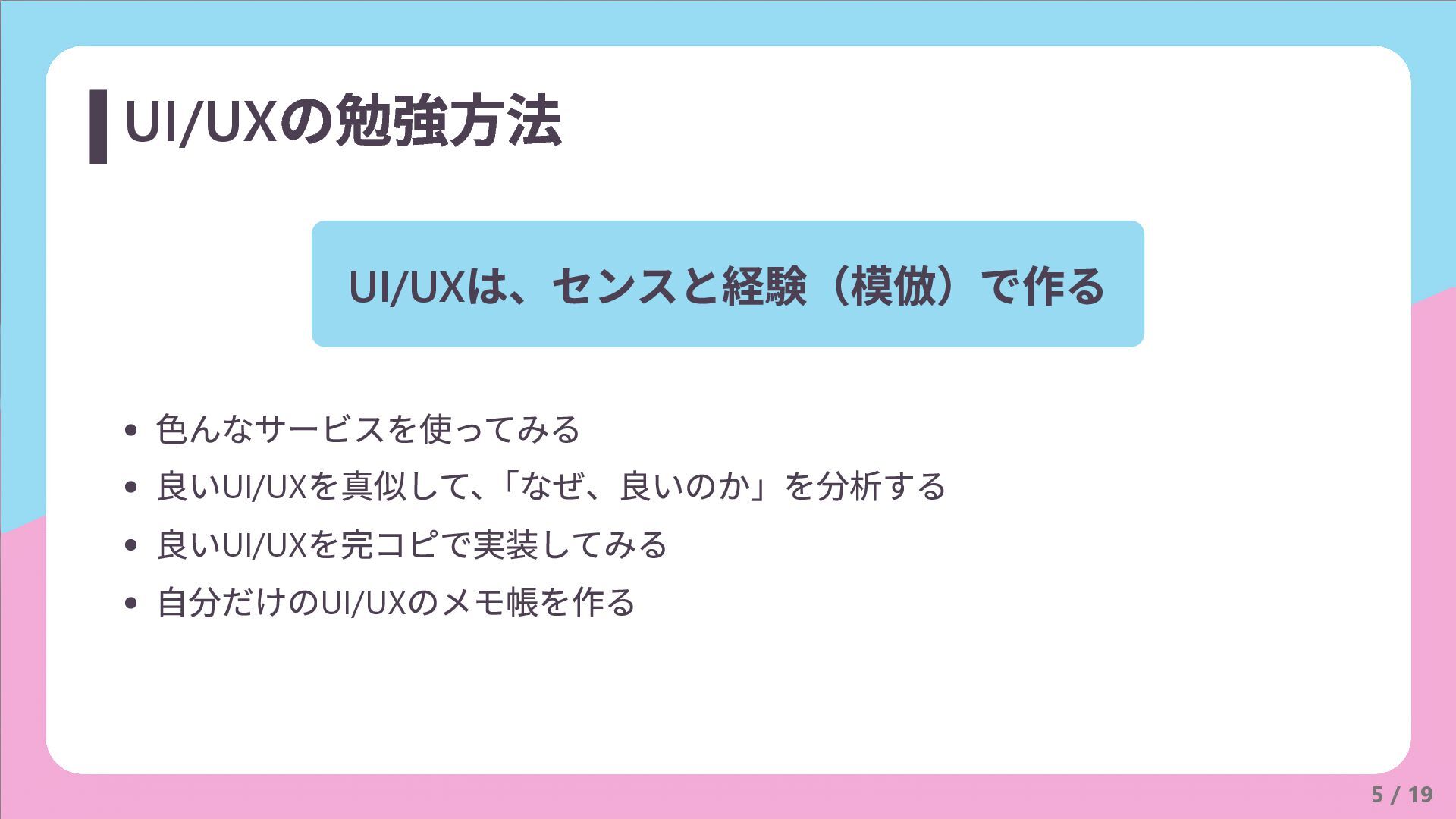 5 / 19 UI/UX の勉強方法