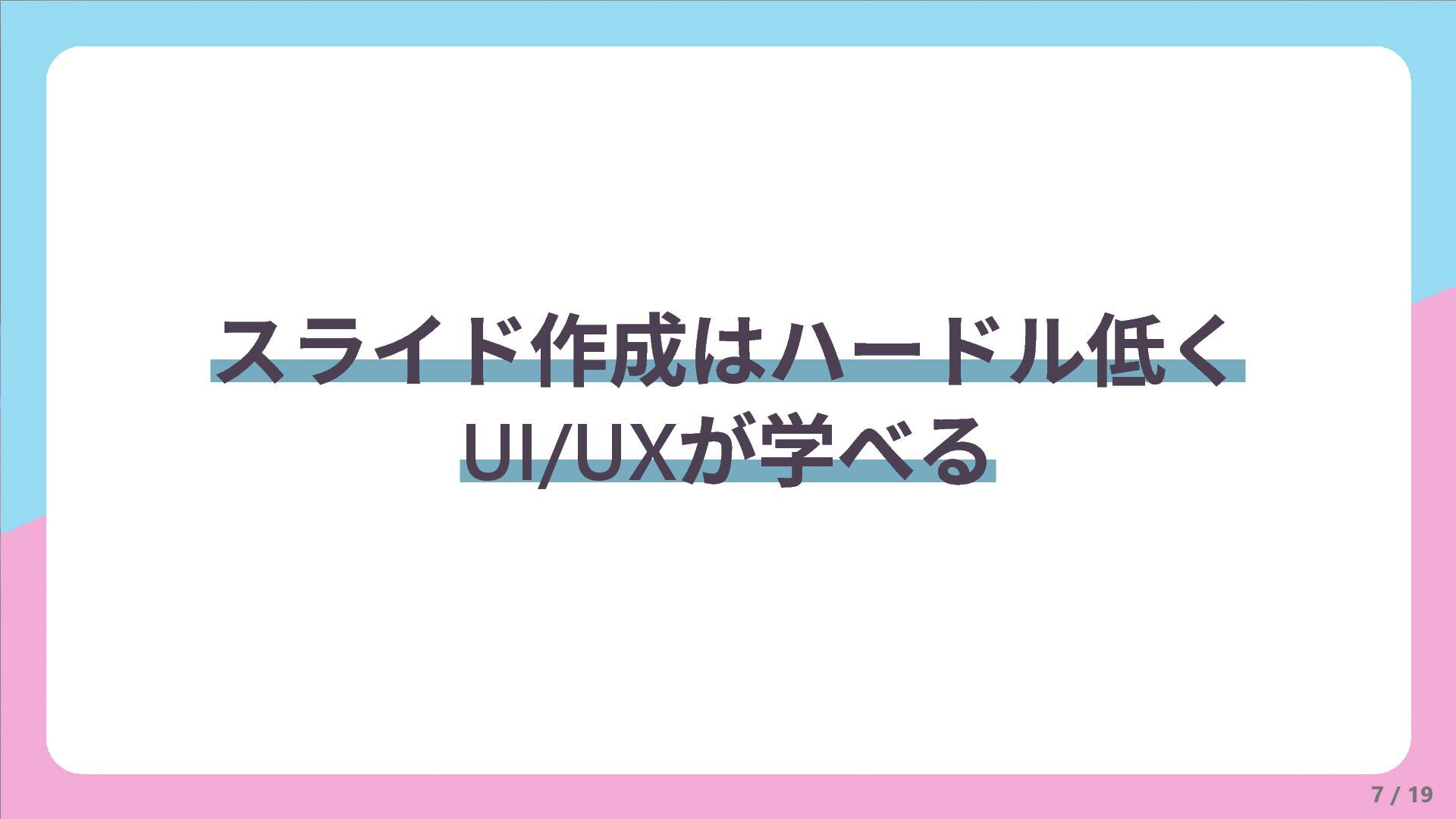 7 / 19 スライド作成はハードル低く UI/UX が学べる