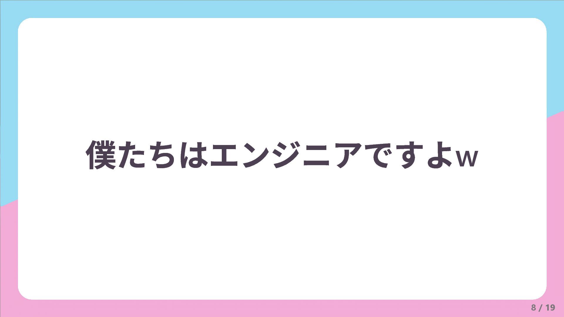 8 / 19 僕たちはエンジニアですよw