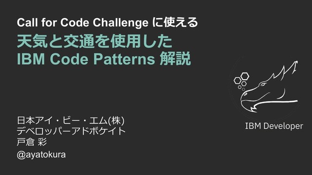 「Call for Codeに使える天気と交通を使用したIBM Code Patterns 解説」セッション資料です。 https://ibm-developer.connpass.com/event/134046/