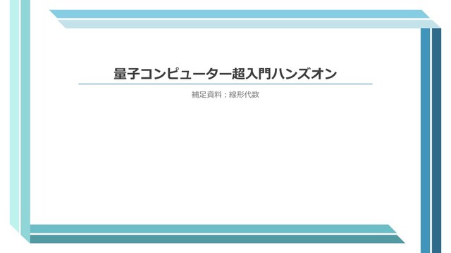 3 1 1 3 = −2 ∗ 1 + 4 ∗ 3 3 ∗ 1 + 1 ∗ 3 = −2 ∗ 1 + 4 ∗ 3 3 ∗ 1 + 1 ∗ 3 = −2 + 12 3 + 3 = 10 6 AB= −2 4 3 1 −1 1 3 6 = −2 ∗ −1 + 4 ∗ 3 −2 ∗ 1 + 4 ∗ 6 3 ∗ −1 + 1 ∗ 3 3 ∗ 1 + 1 ∗ 6 = 2 + 12 −2 + 24 −3 + 3 3 + 6 = 14 22 0 9 BA= −1 1 3 6 −2 4 3 1 = −1 ∗ −2 + 1 ∗ 3 −1 ∗ 4 + 1 ∗ 1 3 ∗ −2 + 6 ∗ 4 3 ∗ 4 + 6 ∗ 1 = 2 + 3 −4 + 1 −6 + 24 12 + 6 = 5 −3 18 18 *行列の掛け算は順番を変えても同じになるとは限らない! → どのゲートをどの順番で通すかを慎重に考えることが必要になる!