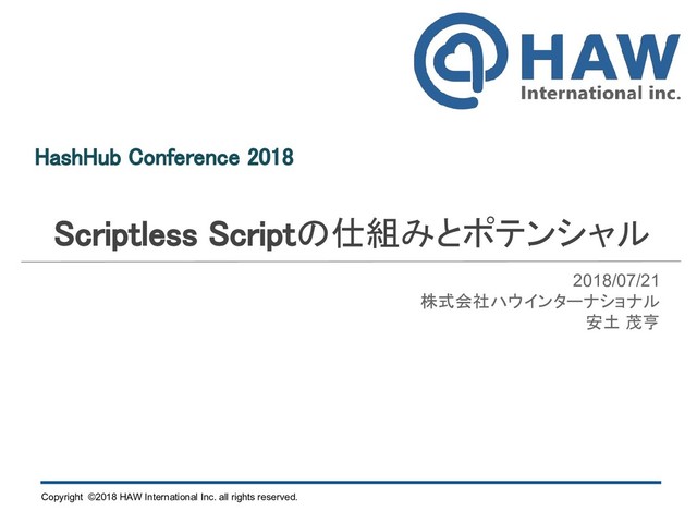 2018 Scriptless Scriptの仕組みとポテンシャル 2018/07/21 株式会社ハウインターナショナル 安土 茂亨