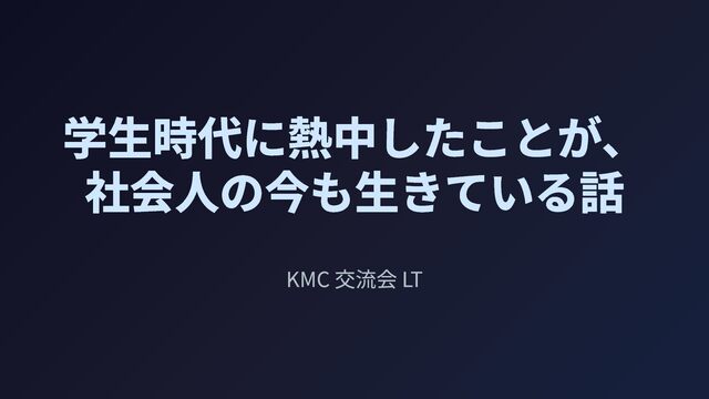 学生時代に熱中したことが、 社会人の今も生きている話 KMC 交流会 LT