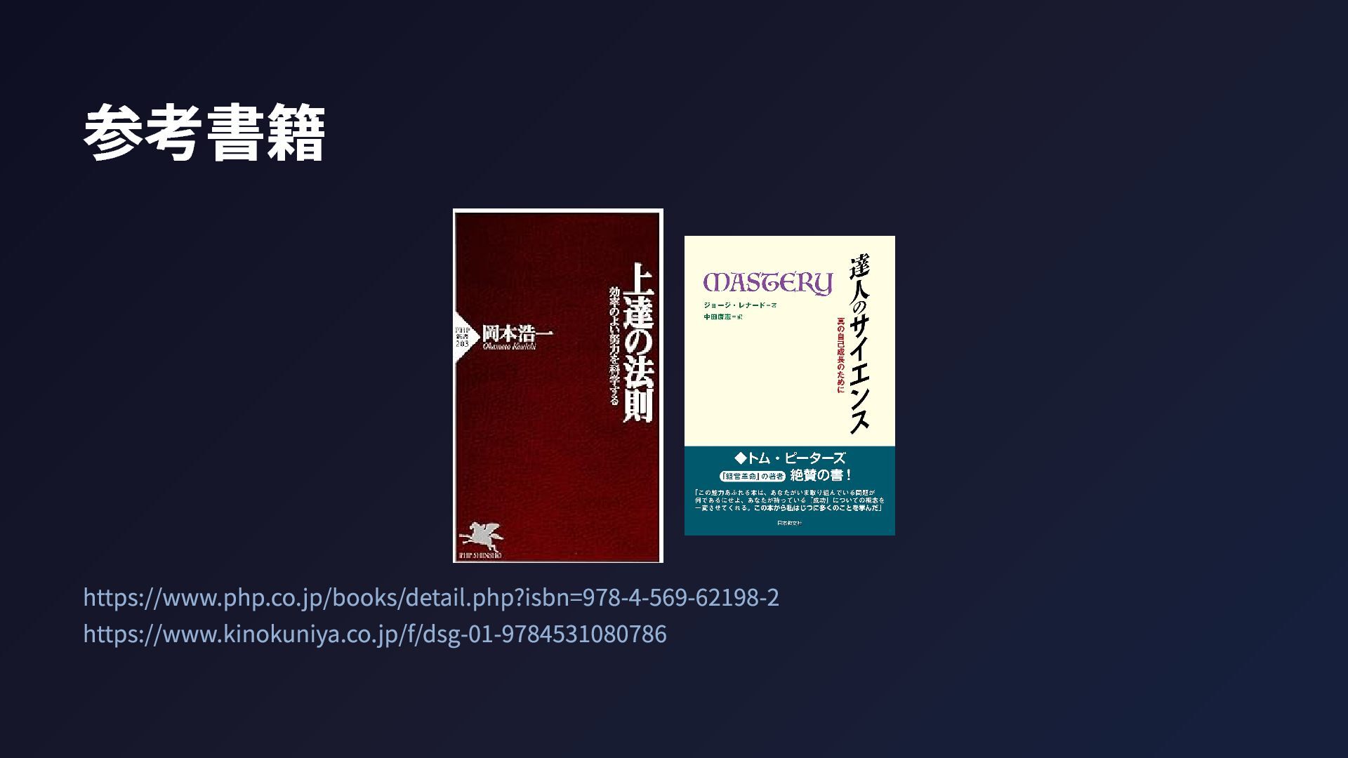 参考書籍 https://www.php.co.jp/books/detail.php?isbn=978-4-569-62198-2 https://www.kinokuniya.co.jp/f/dsg-01-9784531080786