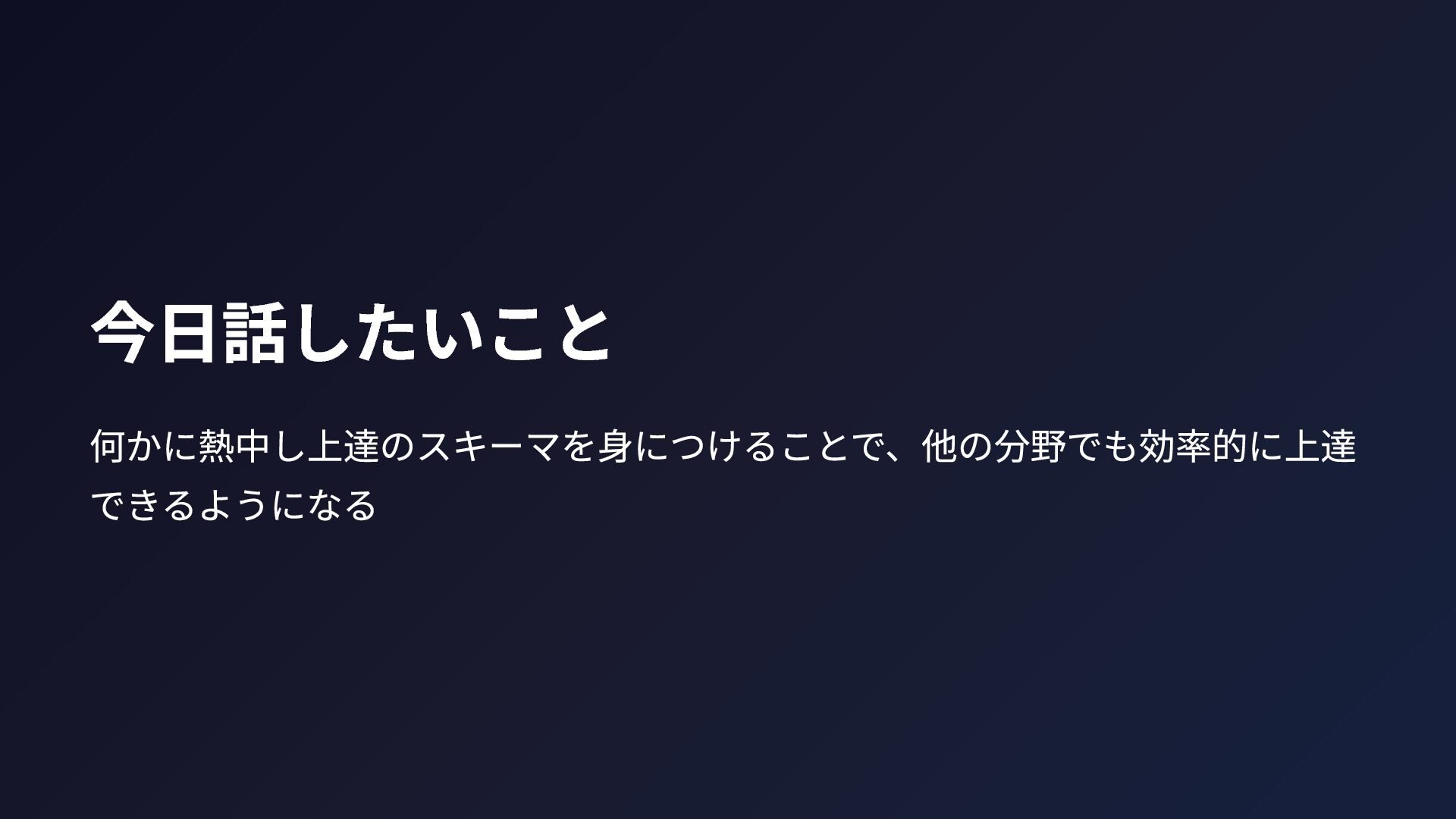 今日話したいこと 何かに熱中し上達のスキーマを身につけることで、他の分野でも効率的に上達 できるようになる
