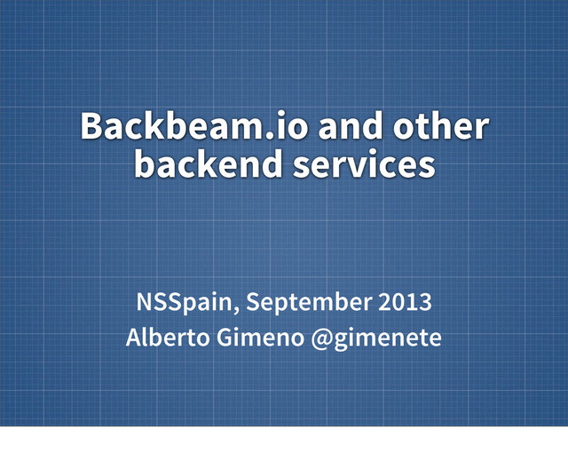 Backbeam.io and other backend services NSSpain, September 2013 Alberto Gimeno