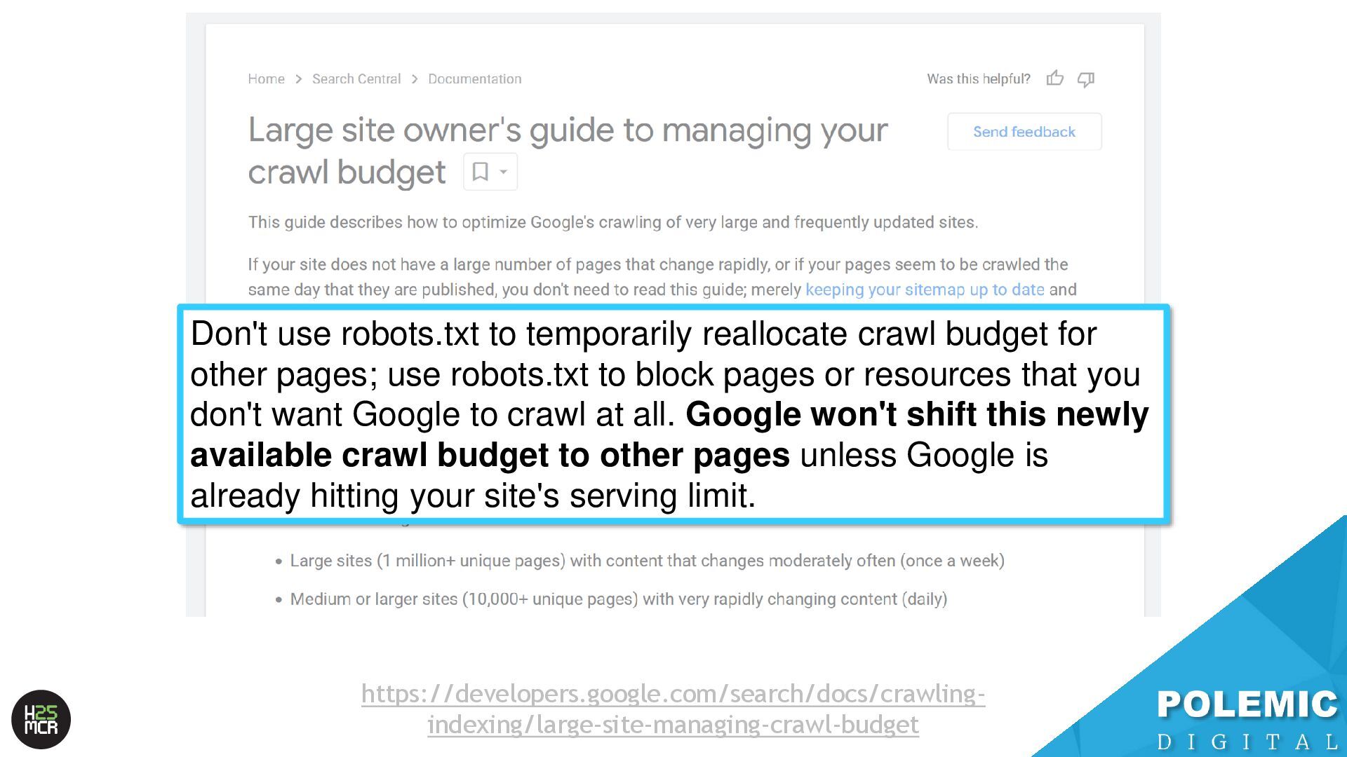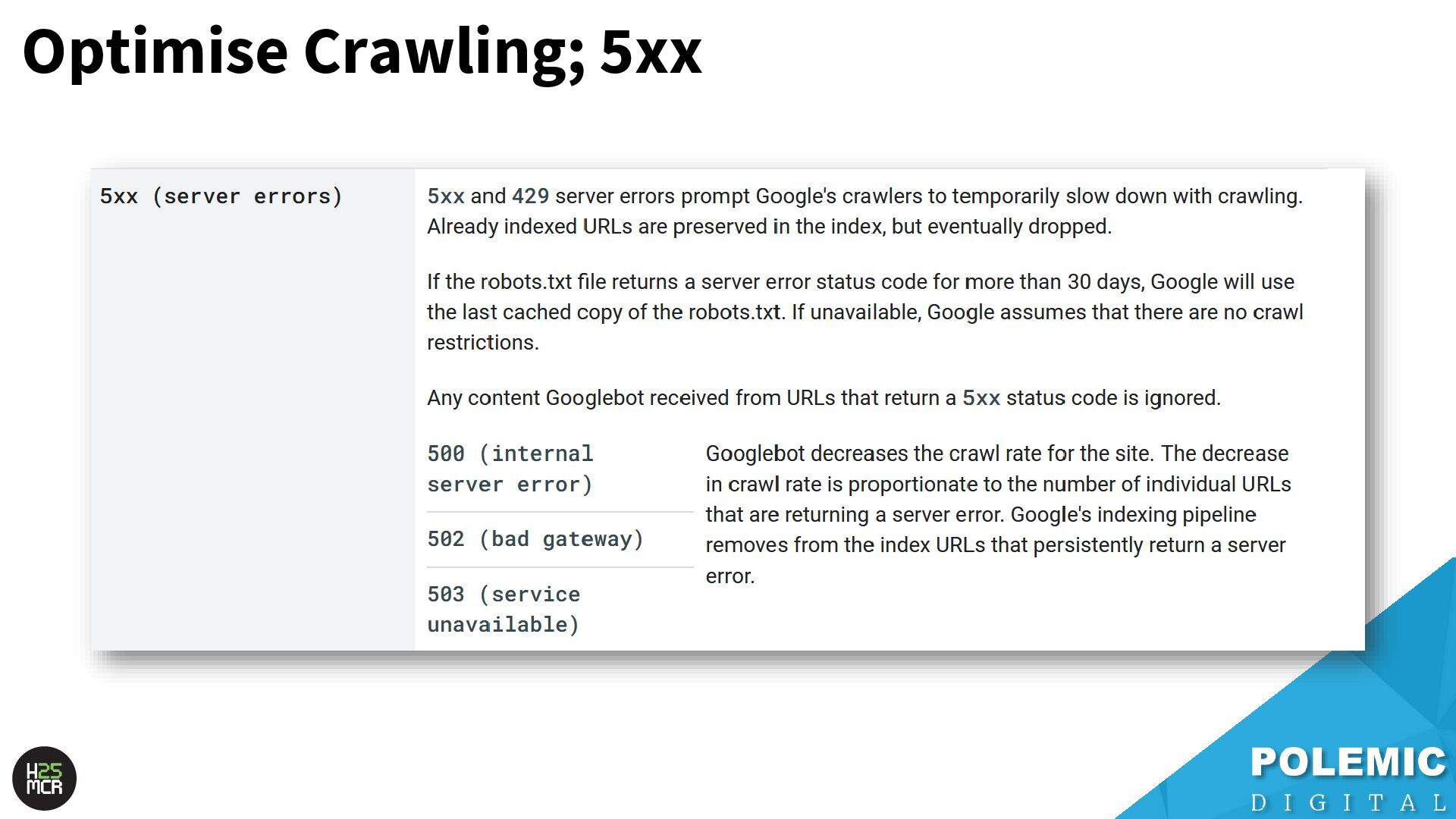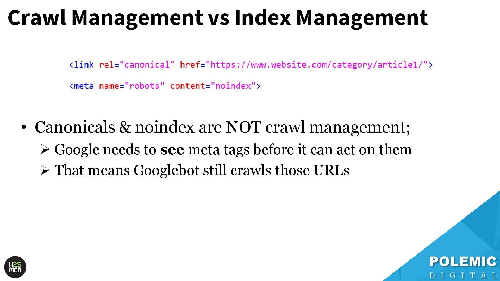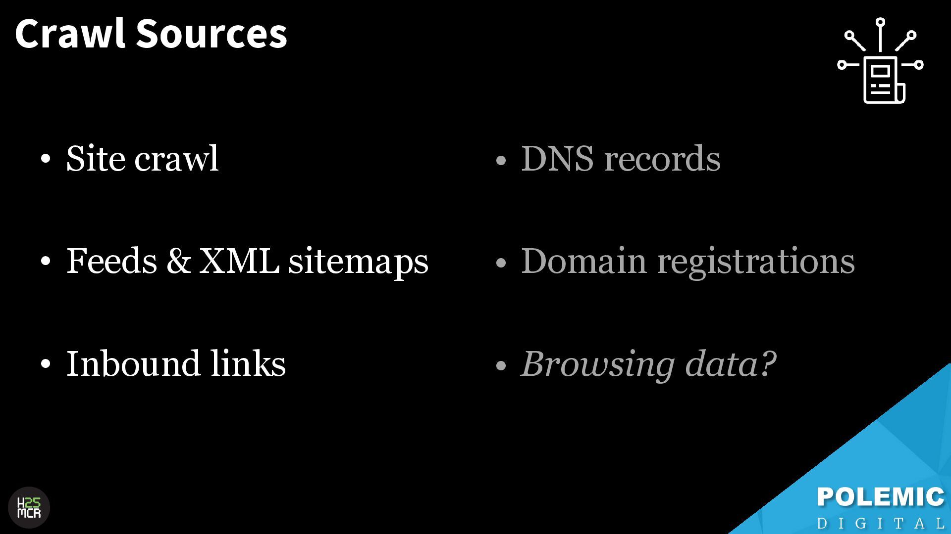 Slides from my May 2025 talk at Hive MCR in Manchester. I spoke about the technical SEO foundations of Googlebot crawling, some theories on different levels of crawl queues, and tips on maximising crawl efficiency.