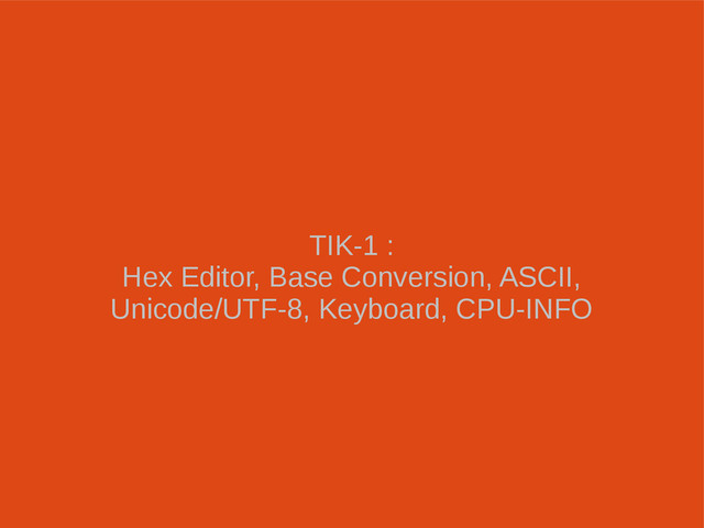 suatu file, disk, atau partisi dan mengkonversinya pada format desimal. Beberapa editor juga menampilkan file ASCII nya. • Heksadesimal: 0 1 2 3 4 5 6 7 8 9 A B C D E F • Setiap pasang heksadesimal merepresentasikan 8 bits, misal 3F=00111111 • 1 byte = 8 bits • Hex Editor: Ghex, hexedit, bless, free hex,etc